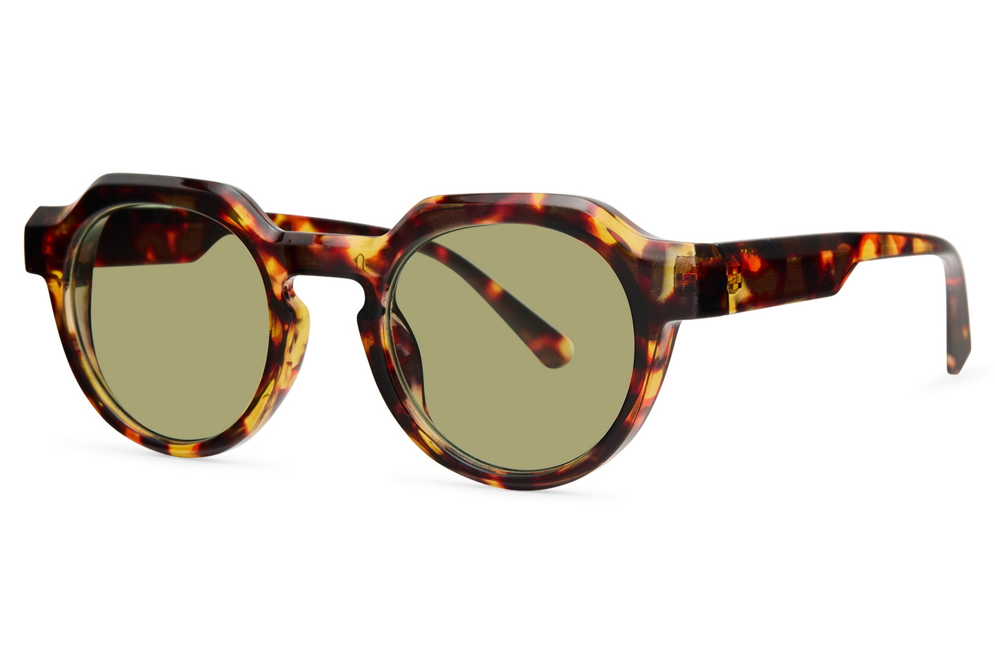 Choose from five striking shades—Fire Green, Tort Blue, Black Tea, Orange Blue, and Deep Tort Yellow.